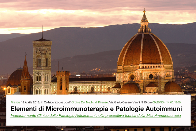 Seminario: “Elementi di Microimmunoterapia e Patologie Autoimmuni“. Firenze, 13 Aprile 2013, Ordine Dei Medici Chirurghi e Odontoiatri, Via Giulio Cesare Vanni N.15.