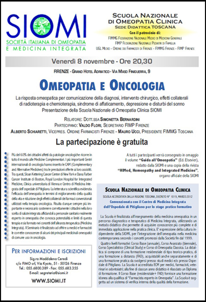 La risposta omeopatica per comunicazione della diagnosi, intervento chirurgico, effetti collaterali di chemioterapia e radioterapia, sindrome da affaticamento, depressione e disturbi del sonno.